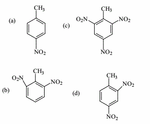 一种纯净的硝基甲苯的NMR图谱中出现了3组峰,其中一个是单峰,一组是二重峰,一组是三重峰。该化合物是下列结构中的( )。