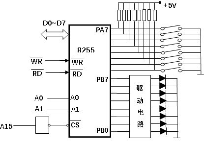 更多“读入开关量到8255A,再将其通过指示灯显示。以8255A的A口作输入,B口作输出,输入用开关,输出用发光二极管,要求”相关的问题