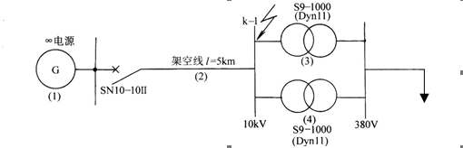 某工厂供电系统如图3-4所示。已知电力系统出口断路器为SN10-10Ⅱ型。试用标幺制法计算求工厂变电所高压10kV母线上k-1点短路和低压380V母线上k-2点短路的三相短路电流和短路容量。