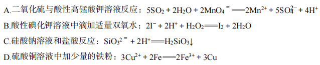 A.SO2气体通入酸性高锰酸钾溶液中,使高锰酸钾褪色说明SO2有漂白性