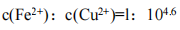 B.当Fe(OH)2和Cu(OH)2沉淀共存时,溶液中: