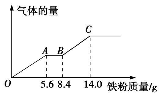 19、现有某稀硫酸和稀硝酸的混合溶液200mL,将其平均分成两份。向其中一份中逐渐加入铜粉,最多能溶解9.6g铜粉;向另一份中逐渐加入铁粉,产生气体的量随铁粉质量的变化关系如图所示(假设硝酸的还原产物为NO气体)。下列分析或结果正确的是( )。