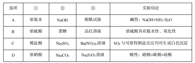 13、利用如图所示装置进行下列实验,能得出相应实验结论的是( )。