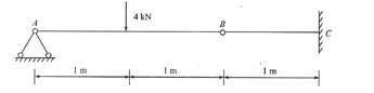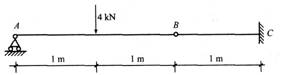 第 17 题 梁的支承与受力如下图所示,A为铰支座,C为固端支座,则A支座反力为( )kN。