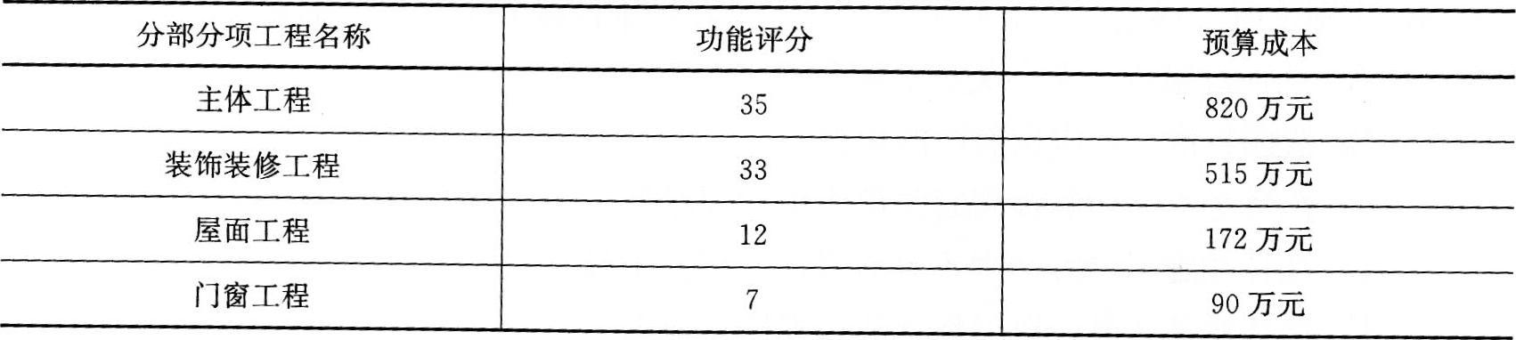 14、对某个项目的各项分部工程进行功能评分如下,计算得出相应各项的预算成本: