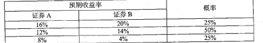 18、投资组合由A,B两种证券构成,证券A在投资组合中的权重为 40%,证券B在投资组合中权重为60%。A,B两种证券的预期收益率及概率分布如下: