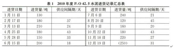 1、【背景资料】某企业2010年度P.0 42.5水泥的实际进货记录如表1所示。由于施工项目任务量大,2011年度计划需用P.0 42.5水泥2 050 t,HRB400钢筋4 000 t。