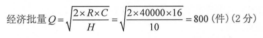 年库存总成本TC=R·P+H·Q=40000 X 20+2X 800=801600(元) (2分)年订购次数为n=R/Q=40000/800=50(次) (2分)