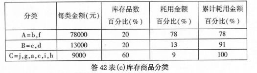 最后,按照题目的规定,把库存品划分为A、B、 C三类,如答42表(c)所示(2 分):