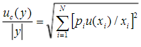 21、当被测量的函数形式为:Y=A1X1+A2X2+…+ANXN,且各输入量不相关时,合成标准不确定度uc(y)为()。