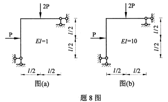 8、比较图(a)与图(b)所示结构的内力与变形,叙述正确的为( )