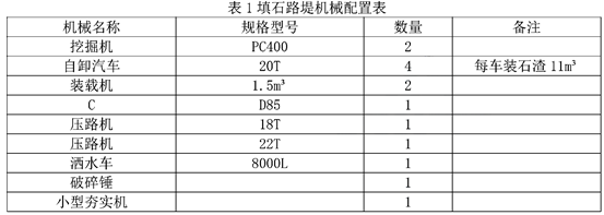 施工中发生以下事件: 事件一:填石路堤施工前,施工单位选择了地质条件,路基断面形式等具有代表性的K32+430~K32+530段铺筑了填石路堤试验路段,填料均取自主线K32+010~K32+300段路堑爆破的石灰岩石渣,对拟作为路堤填料的材料进行取样试验,其单轴饱和抗压强度在40~55MPa之间,属于中硬岩石。 通过路堤试验段施工,施工单位总结出一套适用于该票段填石路堤施工的方案,确定了满足填石路堤压实质量控制标准的机械组合以及压实机械规格、松铺厚度、沉降差,孔隙率等相关差数与指标,填石路堤机械配置见表1 表1填石路堤机械配置表