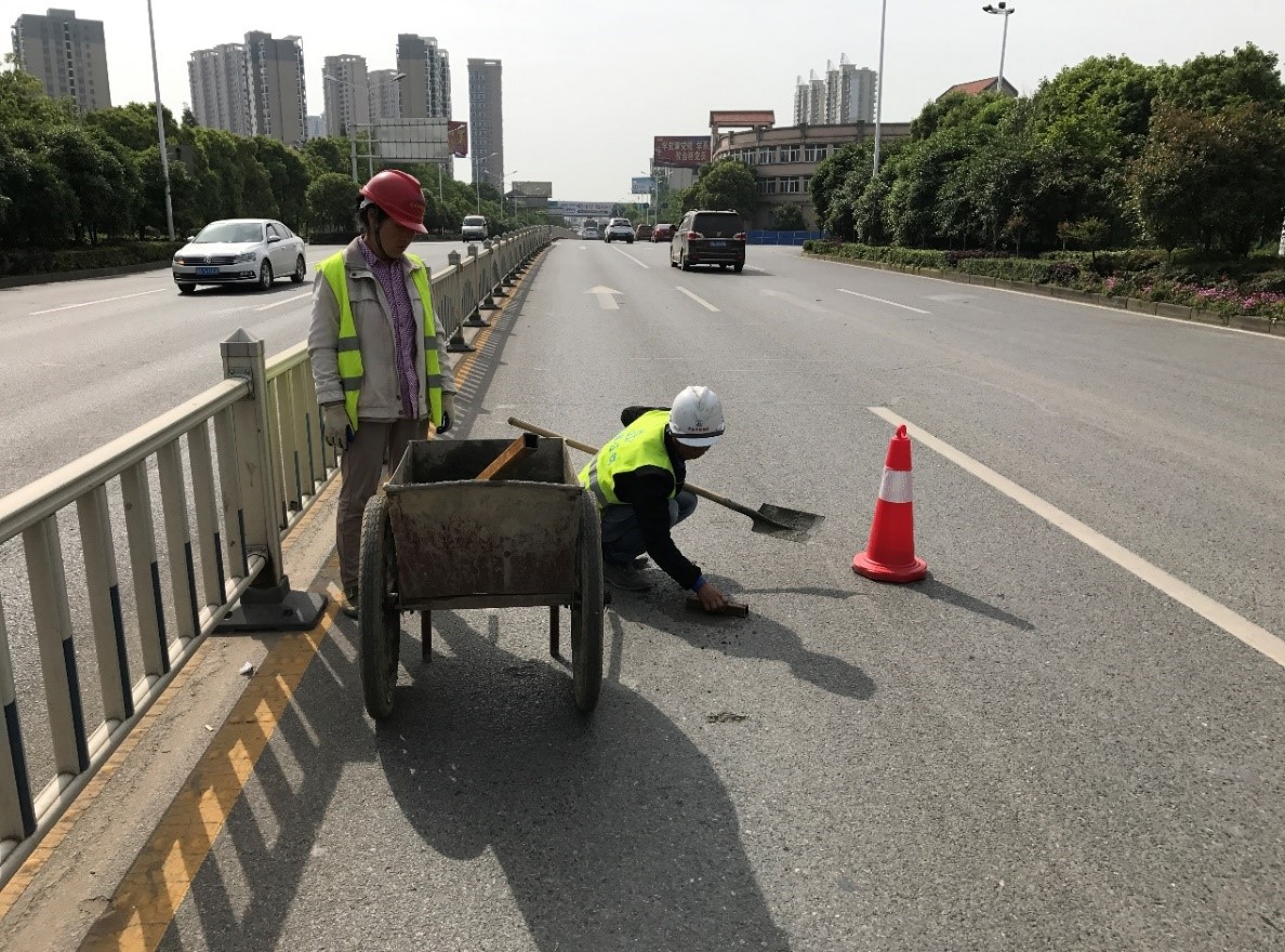 17、关于下图道路上作业存在的安全隐患,下列处理措施中正确的是()。