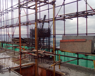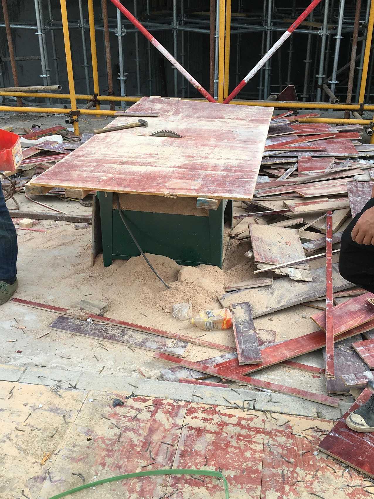 E.悬挑平台上有杂物