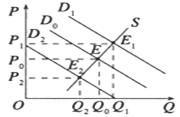 1、如图反映的是在一定时期内某商品的供求量(Q)随价格(P)变化的情况曲线S为供给曲线,D为需求曲线,E为某商品的均衡价格假定其他条件不变,下列情况中关于均衡价格E变动的描述正确的有( )。