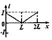 7、如图甲所示,等腰直角三角形区域内分布有垂直于纸面向外的匀强磁场,它的一条直角边在x轴上且长为L。纸面内一边长为L的正方形导线框沿X轴正方向做匀速直线运动穿过匀强磁场区域,在 t=0时,恰好位于途中甲所示,以顺时针方向为导线框中的电流正方向,在图中能正确表示电流—位移 (i-x)关系是( )。