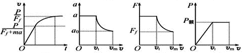 10、汽车从静止匀加速启动,最后做匀速运动,其速度随时间及加速度。牵引力和功率随速度变化的 图像如图所示,其中正确的有( )。