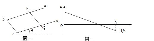 5、图中abcd为导体做成的框架,其平面与水平面成θ角质量为m的导体棒PQ与abcd接触良好,回路的总电阻为R,整个装置放在垂直于框架平面的变化磁场中,磁场的磁感应强变化如图2,PQ始终静止,在0~t1时间内( )。