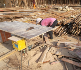 D.锯沫渣、模板、木方等易燃材料乱堆乱放,未及时清理归堆,堵塞通道