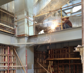 26、下图中,是某在建工程的地下室,现场检查时发现有工人在地下室有以下行为,请问下列哪些行为存在违规?