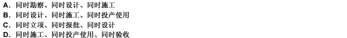 第 13 题 根据《建筑项目环境保护管理办法》的规定,对环境有影响的建设项目的污染防治,执行“三同时”制度。“三同时”的内容是哪一项?( )