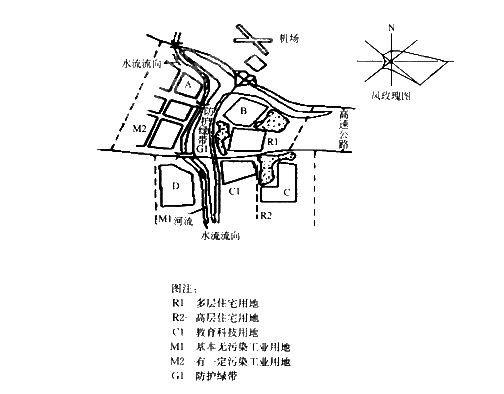 第 42 题 在下面的几个地块中,高科技工业小区设置在哪个地块较为适宜?( )