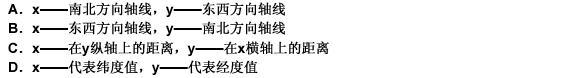 第 2 题 工程场地测量坐标用x、y表示,以下哪种概念是正确的?( )