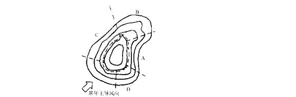 第 86 题 图示为一小山,风在其周围形成迎风区、顺风区、背风区、涡风区、高压风区等小气候区,何处为涡风区?( )