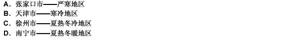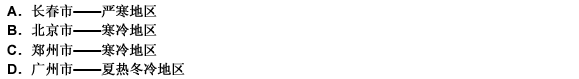 第 34 题 根据“全国建筑热工设计分区图”,下列哪个城市所属的气候分区有误? ( )