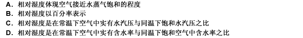 第 66 题 下列关于相对湿度的论据,哪一条是错误的?( )
