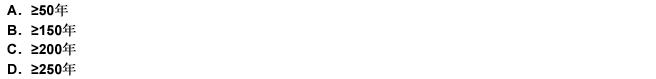 第 67 题 城市应根据其社会经济地位的重要性或非农业人口的数量分为四个等级。其中I级(特别重要的城市)非农业人口≥150万人,其防洪标准(重现期)为多少年?( )