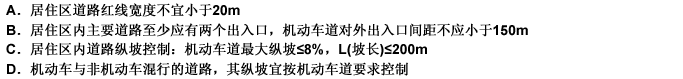 第 72 题 关于居住区的道路规划应遵循的规范,以下哪条叙述有错?( )