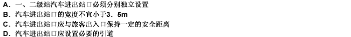 第 64 题 公路汽车客运站的汽车进出站口应符合有关规定,下列哪条有误?( )