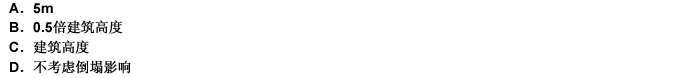 第 8 题 抗力等级为6级的防空地下室的出入口,其周边地面钢筋混凝土结构建筑的倒塌范围应按下列何值选择?( )