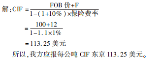 1、我国某外贸公司对外报价每公吨FOB青岛100美元,外方要求改报CIF东京。设每公吨运费为12美元,投保--切险加成率为10%,保险费率为1%。问我方应该如何报价?(保留小数点后两位)