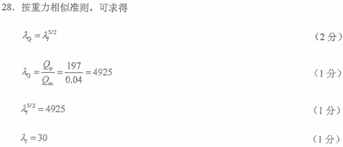 2、通过模型试验研究某工程溢流坝的布置。已知溢流坝的最大下泄流量为197m3/s,实验室的供水能力为0.04m3/s,试根据供水能力确定模型的最大长度比尺。