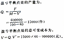 1、甲厂商生产一种产品的单件可变成本为60元,售价100元,每年固定成本为60万元,求企业盈亏平衡点处的产量及盈亏平衡点时的总可变成本