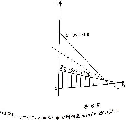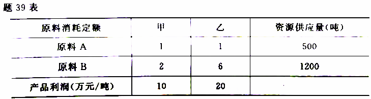 1、某公司利用两种原料A、B生产甲、乙两种产品(吨),各产品所需的原料数,原料限量及单位产品所获利润如题39表。企业目标是追求利润的最大化,试写出该线性规划问题的数学模型,并用图解法求出最优解和最大利润