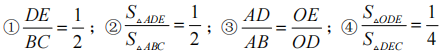 6、如图,在△ABC 中,中线 BE,CD 相交于点 O,连线 DE,下列结论: