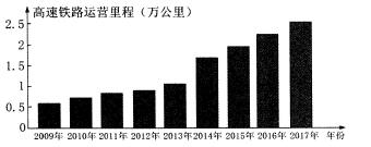 D.与2012年相比,2017年高速铁路运营里程增加了 1倍以上