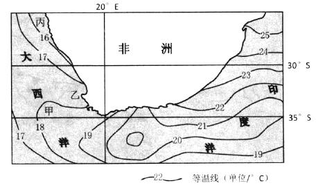 27、下图示意非洲南部周边海域冬季表层水温分布。据此完成下面小题。