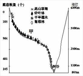 8、读我国30°N附近甲山坡聚落数量和植被随海拔分布示意图(下图)。回答下列各题。