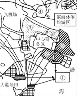 14、天津城市新规划方案确定其城市性质为“国际港口城市、北方经济中心和生态城市”。下图为天津 滨海新区示意图。读图回答下列问题。