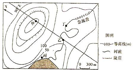22、左图为“某地等高线地形图”(单位:米),右图为“图1中甲、乙两点间地形剖面示意图”。据此回答下列各题。