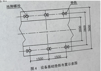 2、案例二 某安装公司承接—项火力发电厂机电安装工程内容包括:锅炉、汽轮发电机组、厂变配电站、化学水系统安装等。安装公司项目部进入现场后,组织编制了施工组织总设计,制定了施工进度计划。编制的施工方案有锅炉钢架安装施工方案、锅炉受热面安装施工方案、汽轮机安装施工方案等。锅炉受热面安装施工方案中的施工程序为:设备开箱检查、二次搬运、安装就位。在各工程开工前,技术人员对施工作业人员就操作方法和要领、安全措施进行了施工方案技术交底。在锅炉受热面安装时,由于锅炉受热面炉前水冷壁上段4片管排到货延期,导致炉前水冷壁安装进度滞后。为此项目部及时调整锅炉受热面的组合安装顺序,修改完善锅炉受热面安装施工方案,并紧急协调15名施工人员支援锅炉受热面的组合安装工作,对施工人员重新进行分工,明确施工任务和责任,保证了锅炉受热面按期完成。安装公司项目部在汽轮发电机组设备安装过程检查中发现垫铁组布置位置存在问题,布置如图4。问题: 1.施工方案技术交底还应包括哪些内容? 2.锅炉受热面安装一般程序是什么? 3.炉前水冷壁进度滞后时,采用了哪些加快施工进度的措施?施工进度计划调整的内容有哪些? 4.图4中垫铁布置位置存在什么问题?应如何改正?