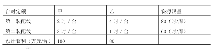 1、某电机厂生产甲、乙两种主要设备,这两种设备均需要逐次经过两条装配线进行装配,有关数据与可获利润列于题39表。为获得利润最大化,该企业每周应如何安排两种设备的生产试写出该线性规划问题的数学模型,用图解法求出最优解