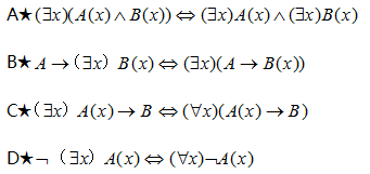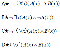 4、设A(x):x是鸟,B(x):x会飞,命题“没有不会飞的鸟”符号化为()