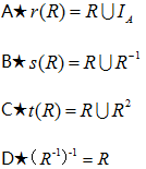 13、设R是A上的二元关系,r、s、t分别指关系的自反闭包、对称闭包、传递闭包、则下列描述不正确的是()