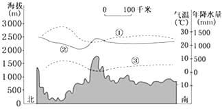 17、下图为我国某区域地形剖面及相关气候资料图。读图,完成下列各题。