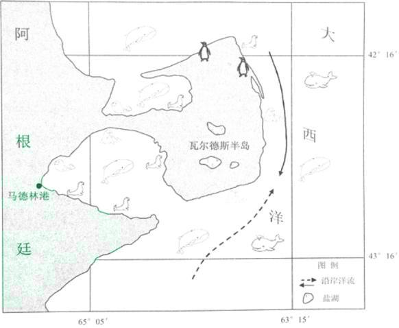 9、瓦尔德斯半岛位于阿根廷南部大西洋沿岸,地面野草、荆棘丛生,半岛上没有高大树木,但半岛陆地上栖息着181种鸟类,半岛海湾内繁殖着大量鲸等大型海洋动物,是闻名遐迩的“海鸟和海洋动物乐园”,一直以来,瓦尔德斯半岛人迹罕至,但近年来日益受到各国游客的重视。据此回答问题。